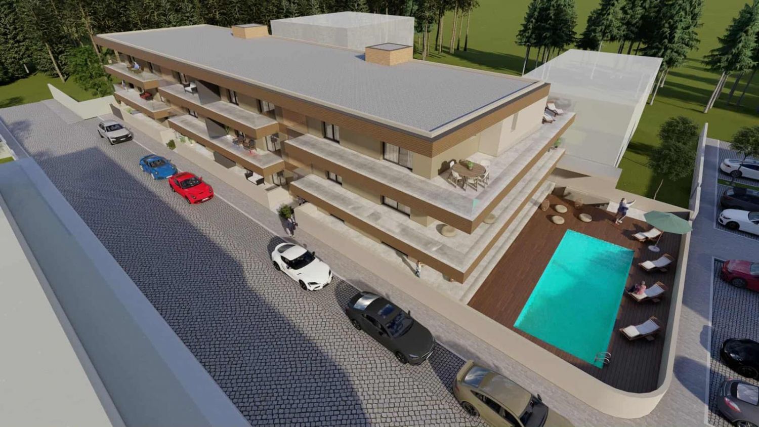 Imóvel com arquitetura moderna, pensado para ser funcionar e harmonioso, inserido em prédio com zonas comuns ajardinadas, piscina e balneários.